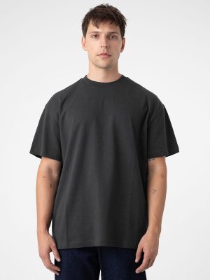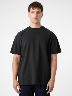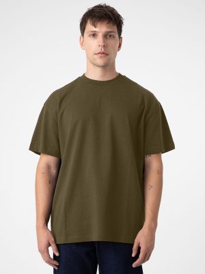 Oversized relaxed fit, drop shoulder, single needle edge stitch, reinforced neckline with 1-inch 1×1 ribbed collar , ultra soft hand, side- seamed, tightly knit, superior printability.