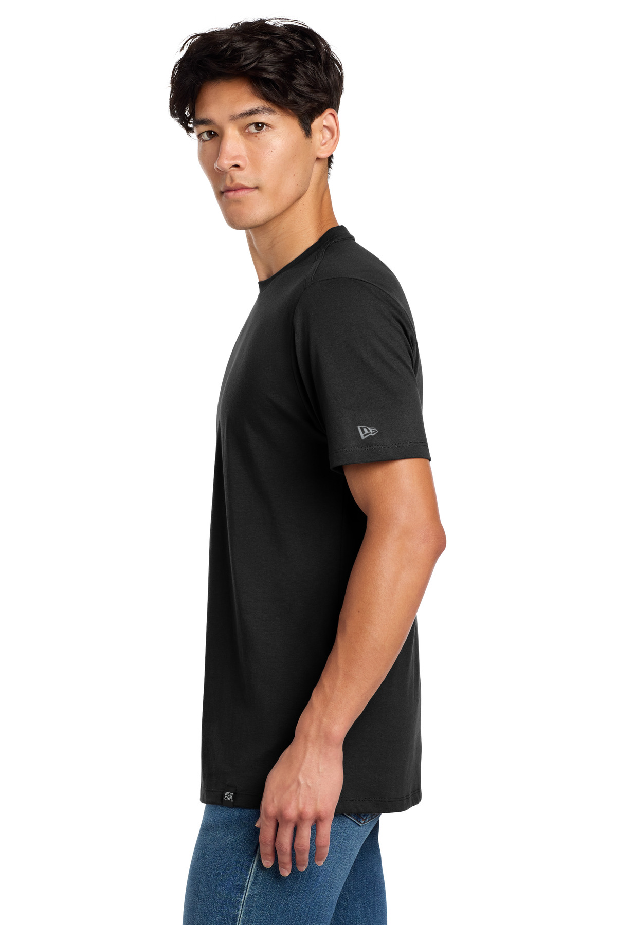 Our 60/40 blend creates an unbelievably soft tee with the comfort of a past era. 4.4-ounce 60/40 ring spun combed cotton/poly 30 singles Heat transfer label for tag-free comfort Reverse neck and shoulder taping Heat transfer New Era flag logo on left sleeve Woven New Era badge at hem