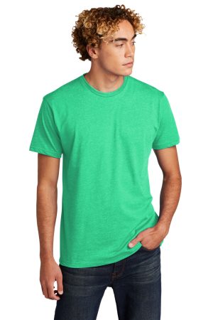 4.3-ounce 60/40 combed ring spun cotton/poly 32 singles CVC blend 1×1 rib knit neck Shoulder to shoulder taping Tear-away label Side seamed