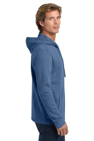 7.4-ounce 60/40 cotton/poly CVC blend Twill back neck tape Aluminum grommets Dyed-to-match drawcord Welt pocket 1×1 rib knit cuffs Double-needle open hem Side seamed Tear-away label