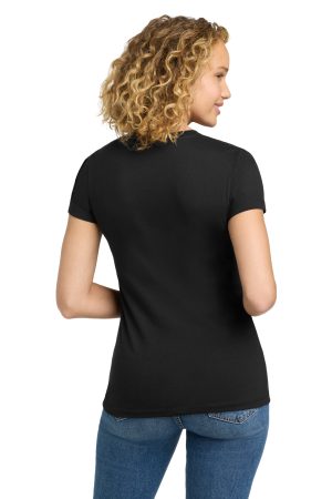 4.3-ounce 60/40 combed ring spun cotton/poly 32 singles CVC blend 1×1 rib knit neck Shoulder to shoulder taping Tear-away label Side seamed Fitted