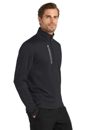 LAYERABLE WARMTH STRETCH FLATLOCK SEAMS FOR COMFORT REFLECTIVE DETAILS 7.4-ounce 95/5 poly/spandex jersey Reflective OGIO heat transfer label for tag-free comfort Zip-through cadet collar Reflective O heat transfer at back neck Reflective welding around zippered chest pocket Tonal embossed O pattern at side panels and elbows Set-in sleeves with shaped cuffs Reflective O heat transfer at left cuff Slight drop tail hem with reflective O heat transfer at back left hem