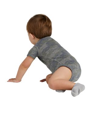 Soft and lightweight this bodysuit has a heathered pattern in a variety of colors for a cool casual look and retro feel. Lap shoulders make for easier changing. 4.5-ounce 60/40 combed ring spun cotton/poly vintage heathered fine jersey EasyTear label for additional comfort and ability to brand as your own Flatlock seams Double-needle ribbed binding on neck shoulders sleeves and leg openings Innovative three-snap closure