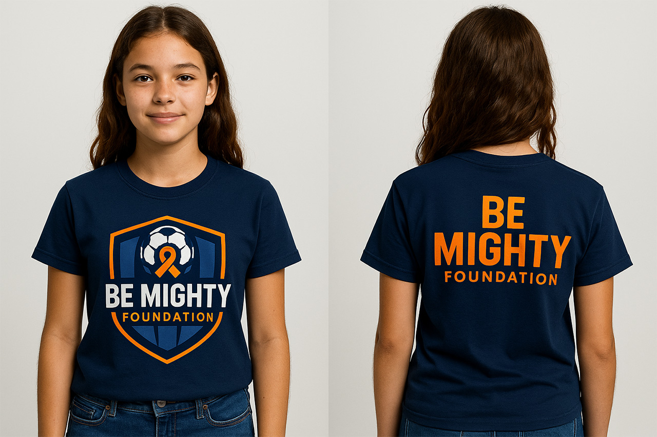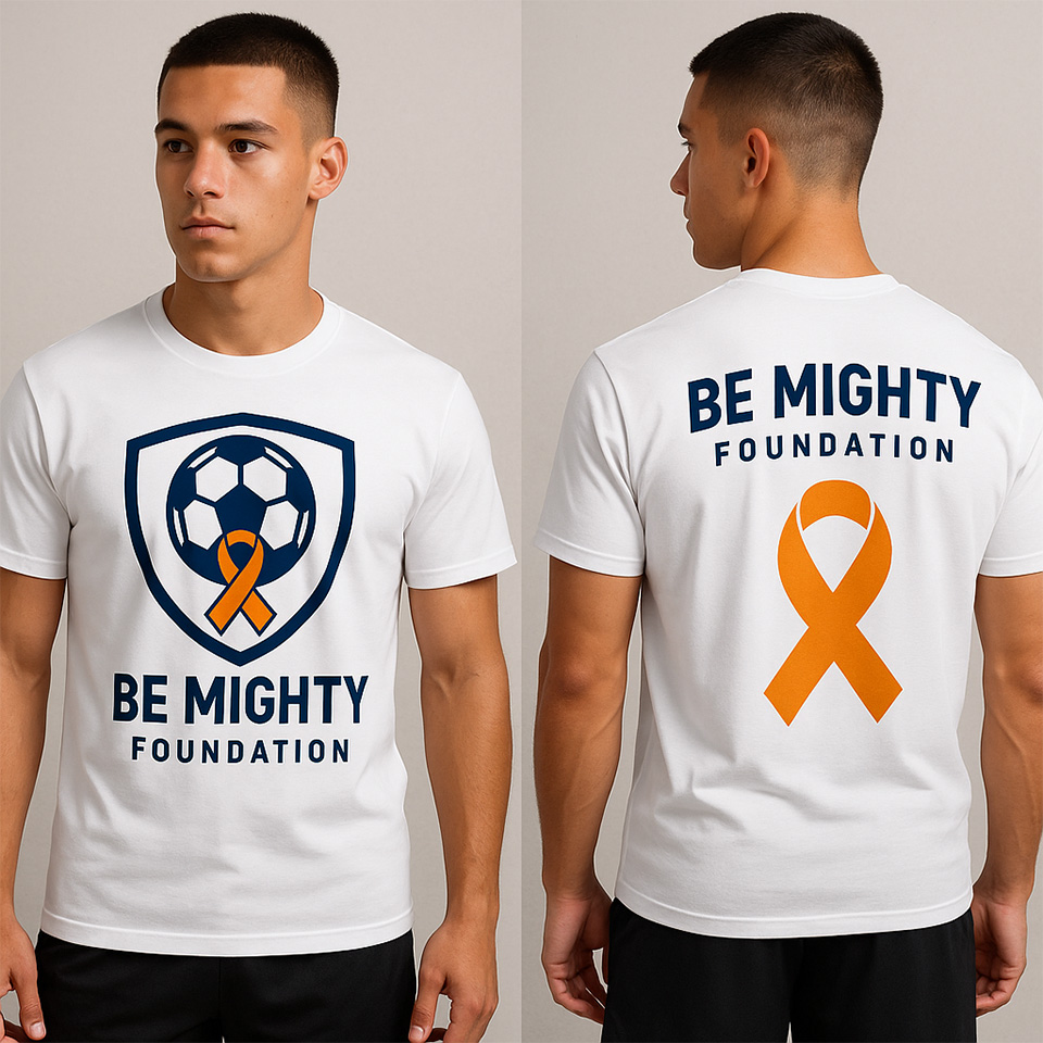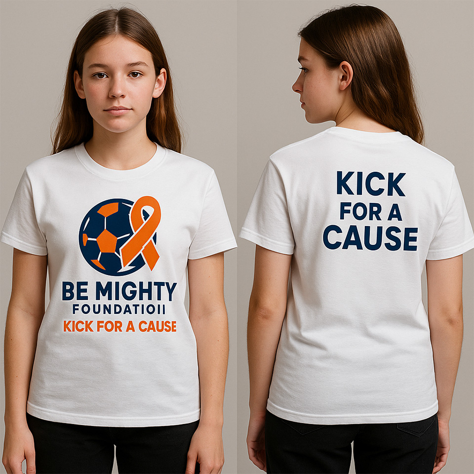 Be Mighty needed a shirt that could drive donations. Exora.Ink designed a custom fundraising shirt for their soccer and childhood cancer mission, turning their message into something supporters can wear, share, and rally around.