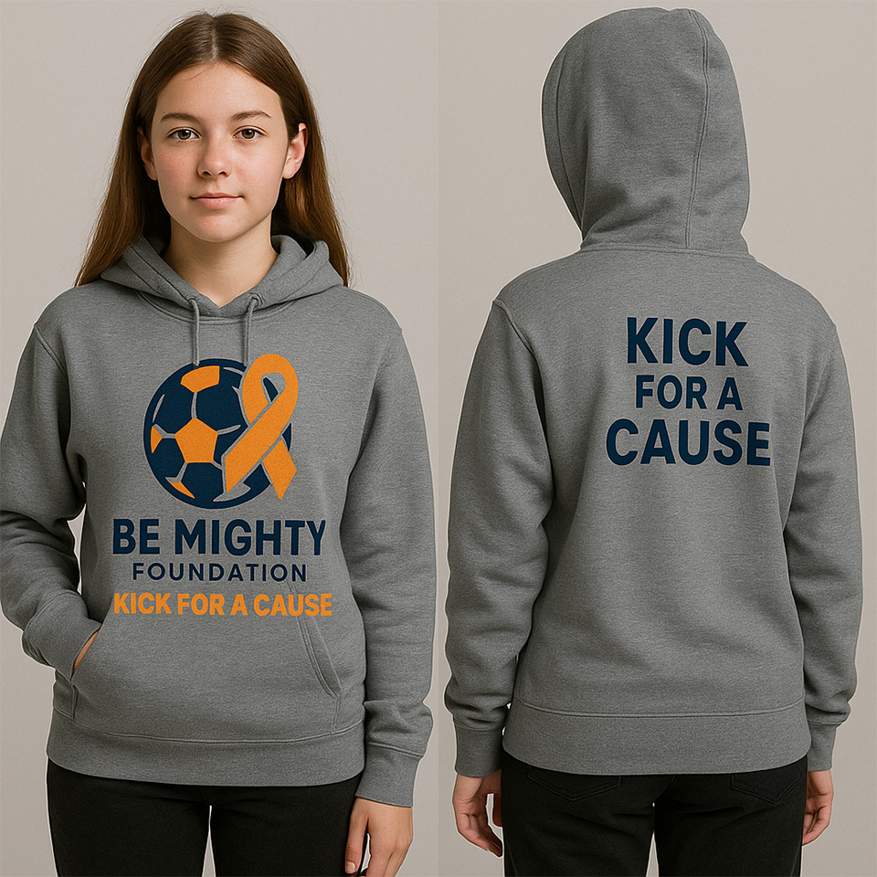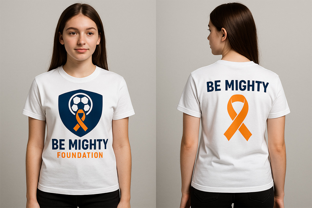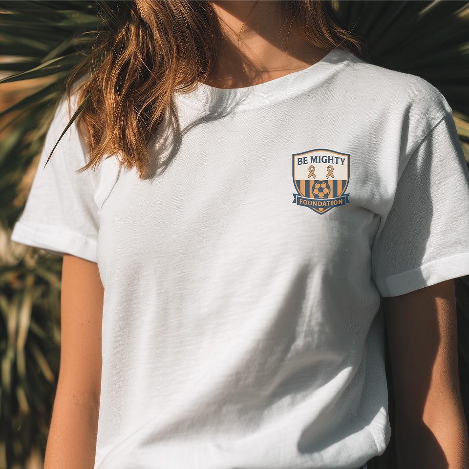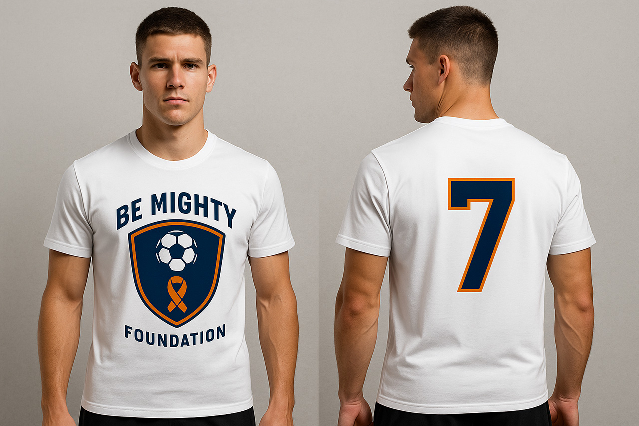 Be Mighty needed a shirt that could drive donations. Exora.Ink designed a custom fundraising shirt for their soccer and childhood cancer mission, turning their message into something supporters can wear, share, and rally around.